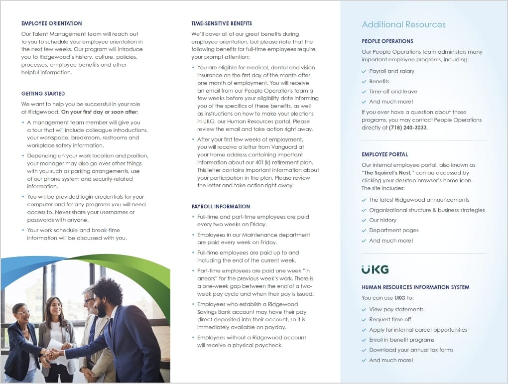 - You can also represent members of our team, especially when highlighting Ridgewood’s service.
